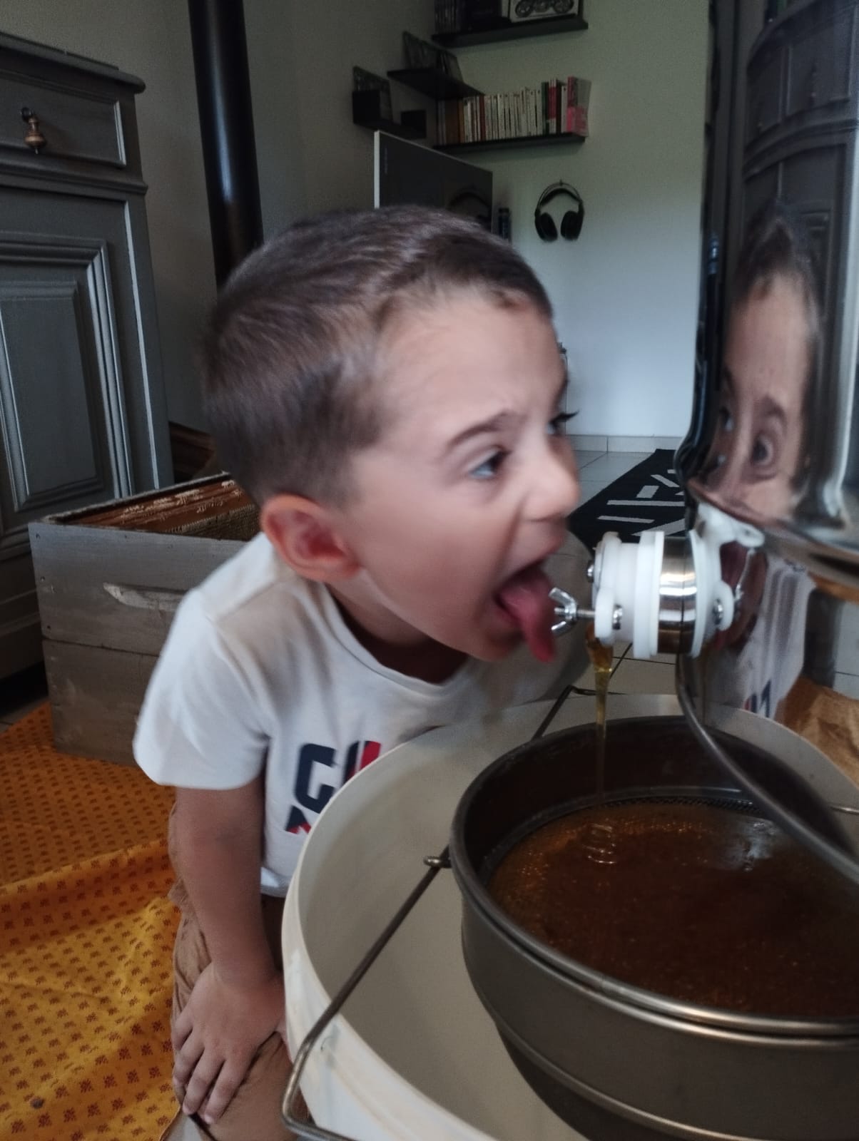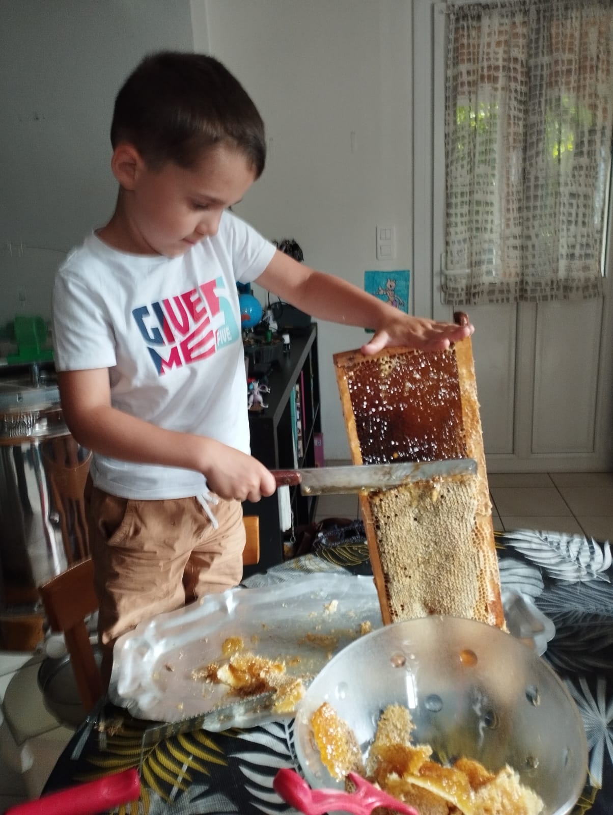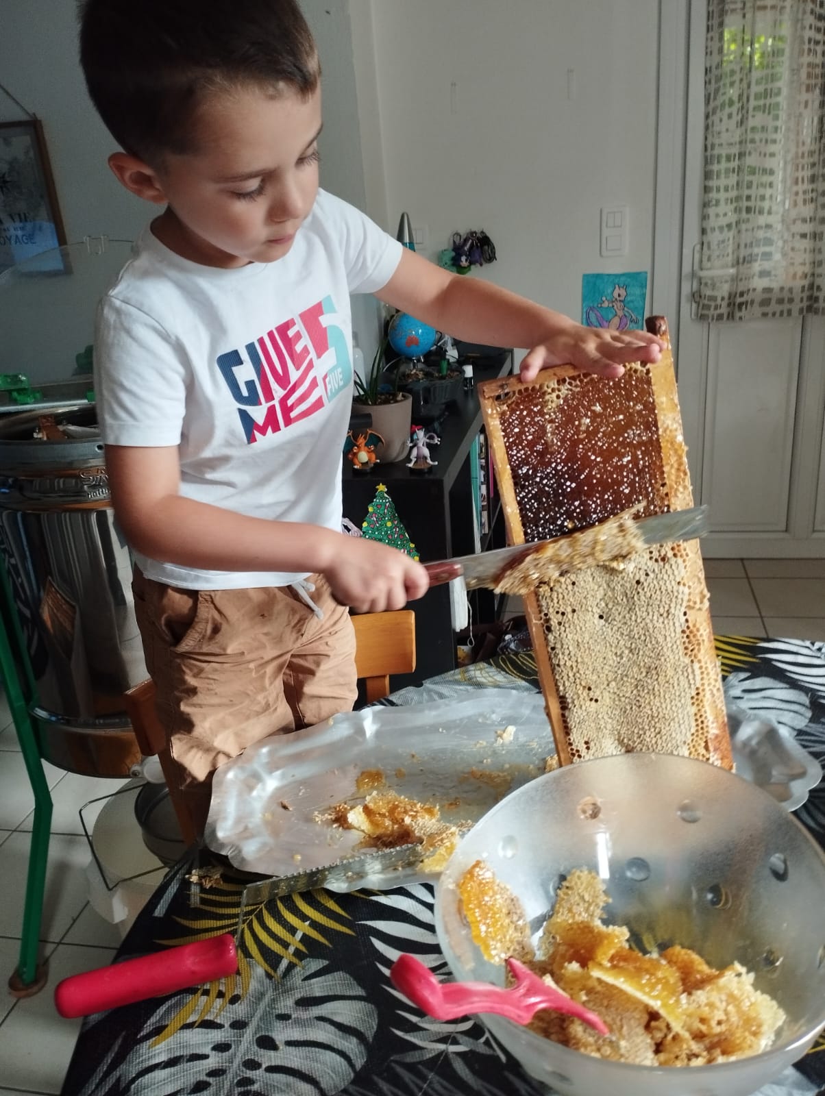 Extraction chez Evelyne avec son petit-fils, 30 kg sur deux hausses ce printemps !